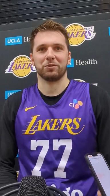 北京时间今日,在完成队内训练后,湖人队球星卢卡-东契奇接受了媒体采访,他谈到了湖人队的最高目标。