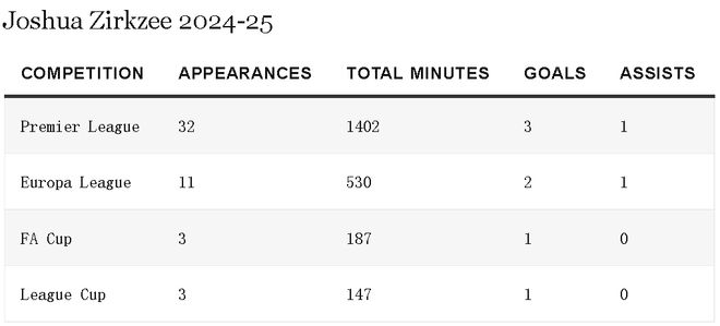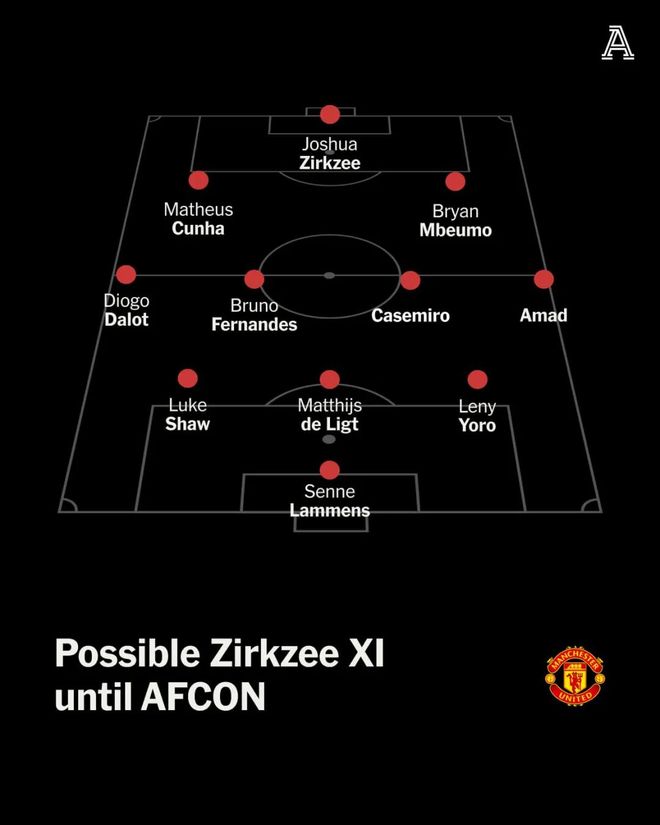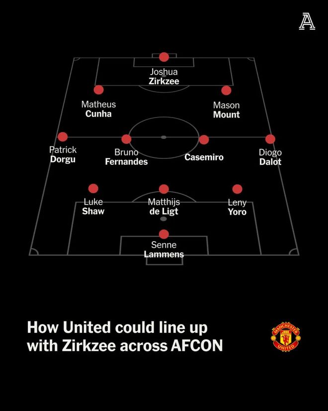然而,齐尔克泽的机会有限。当姆贝莫和阿马德都在的时候,即便谢什科没伤,阿莫林也倾向于在重大比赛使用无锋阵,姆贝莫、库尼亚、阿马德和芒特都是40岁的葡萄牙少帅更信任的球员。