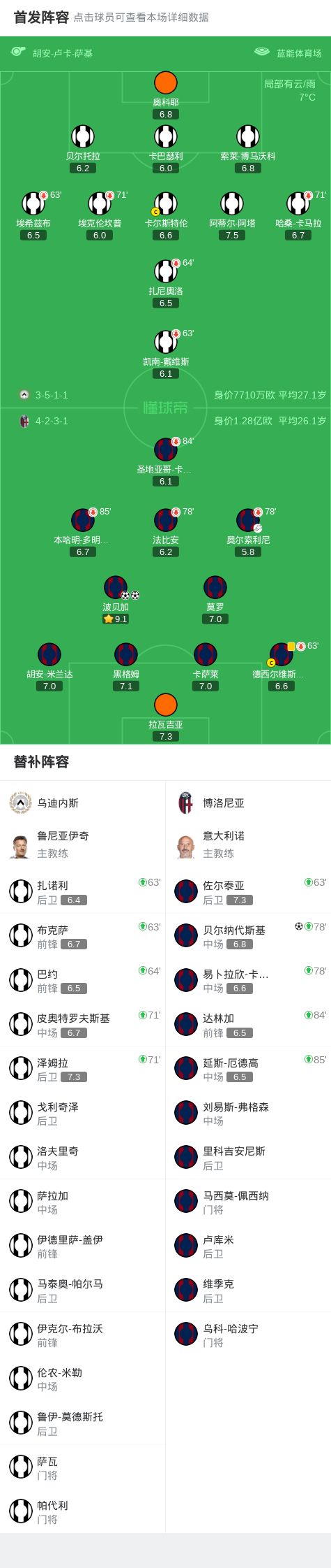 博洛尼亚3-0大胜乌迪内斯,波贝加双响,贝尔纳代斯基破门